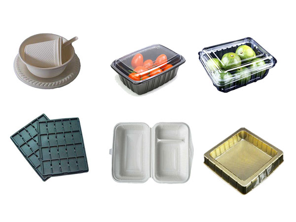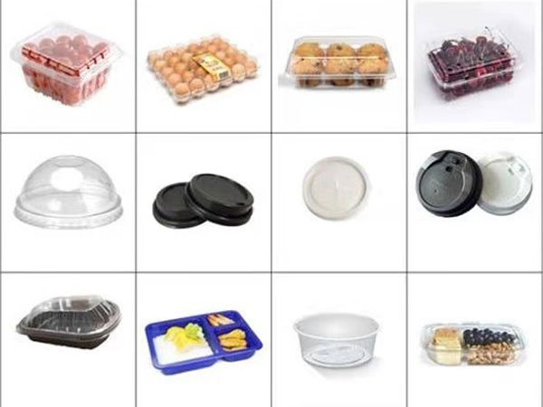 主要適用于BOPS、HIPS、PS、PVC、PET等塑料片材加熱成型、計(jì)數(shù)、堆垛.生產(chǎn)各種敞口型的盒、碟、托盤、碗、蓋等塑料 包裝制品。如食品盒、蛋糕盒、快餐盒、糕點(diǎn)托盤、超市托盤、醫(yī)藥針劑托盤、口服液托盤。